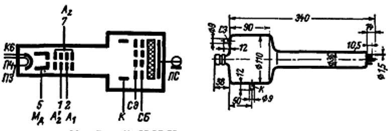 Запоминающая трубка ЛН9 для записи, запоминания и считывания электрических сигналов в радиотехнической аппаратуре.