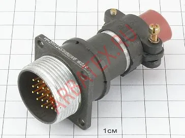 Разъем 2РМТ24БПН19Ш1А1В - принадлежит к серии 2РМТ и имеет блочный корпус. Диаметр посадочного отверстия разъема 24 мм, а так же диаметр контактов 1 мм. Максимальное рабочее напряжение данные разъемы выдерживают до 560 В, с максимальной токовой нагрузкой до 8 А на каждый контакт и до 27 А на соединитель в целом . Разъем 2РМТ24БПН19Ш1А1В имеет 19 контакта и относится к вилкам .